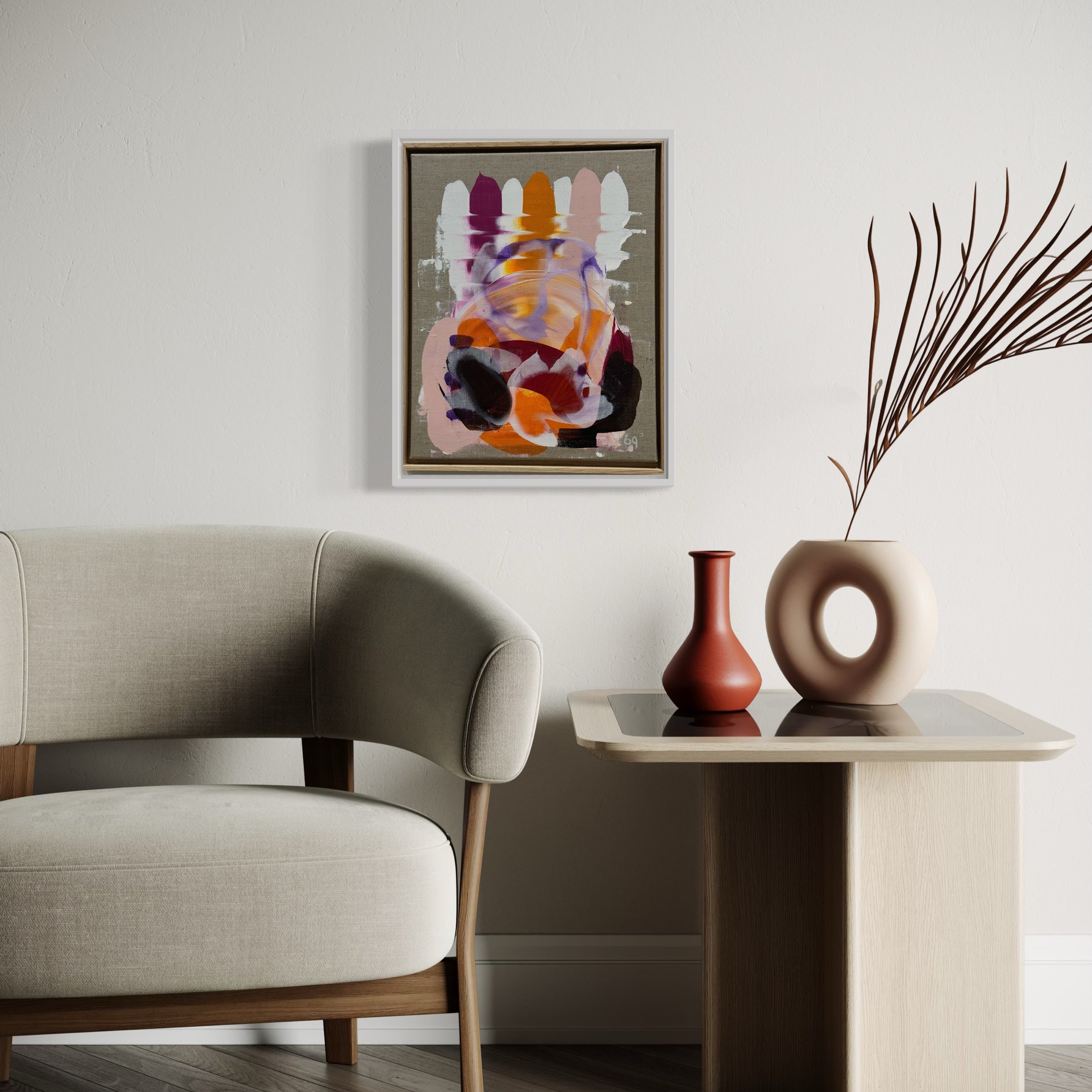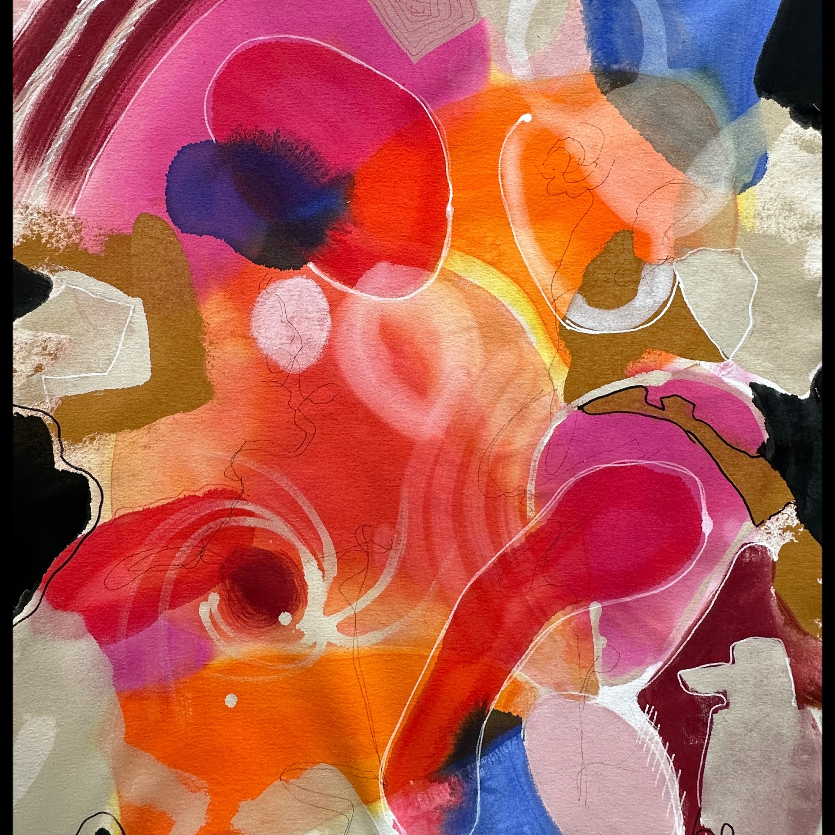 Mitt måleri är abstrakt. Färg och Form. Lager på lager. Tunna transparanta färgfält som får sprida sig över duken. Tidigare lager bestämmer formen för nästa lager. Den kreativa processen kan ta olika vägar. Den startar från tidig morgontimme, när jag vaknar, går till jobbet. Upptäcker sprickor i den murade väggen, asfalten som “krackelerat”. Vårisen liknar ett pussel med olika geometriska former. Snötäcket på vägen med hjulspår som bildar mönster. Trädstammens bark med sina olika asymmetriska linjer. Bildmappen i huvudet fylls ständigt på.